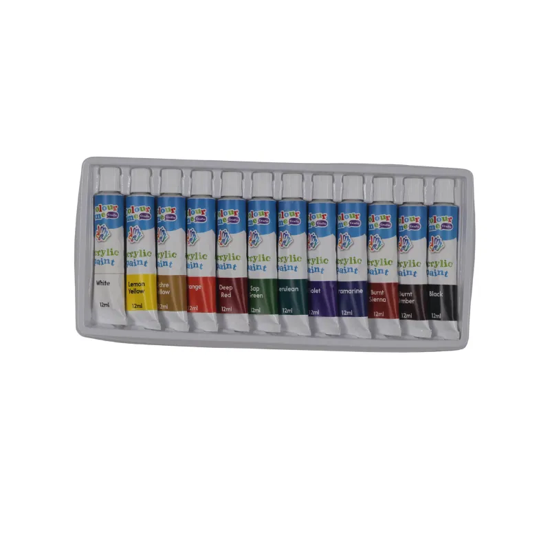 Bold shades for big ideas. This 12-piece acrylic paint set brings vibrant colour to canvases, cards, journals, and school projects. Smooth, blendable, and beginner-friendly, they're great for anyone ready to level-up their art game.