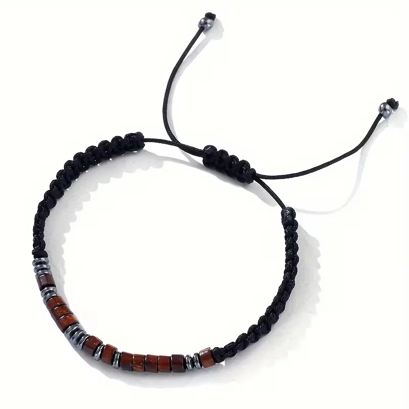 Handmade wooden-beaded bracelet.
